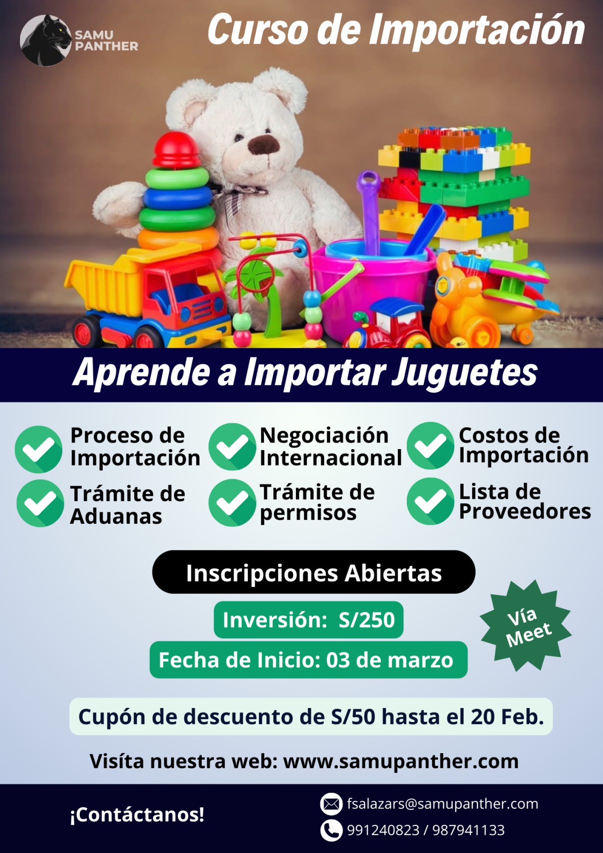 Correo: fsalazars@samupanther.com / Teléfonos: 991240823 - 987941133